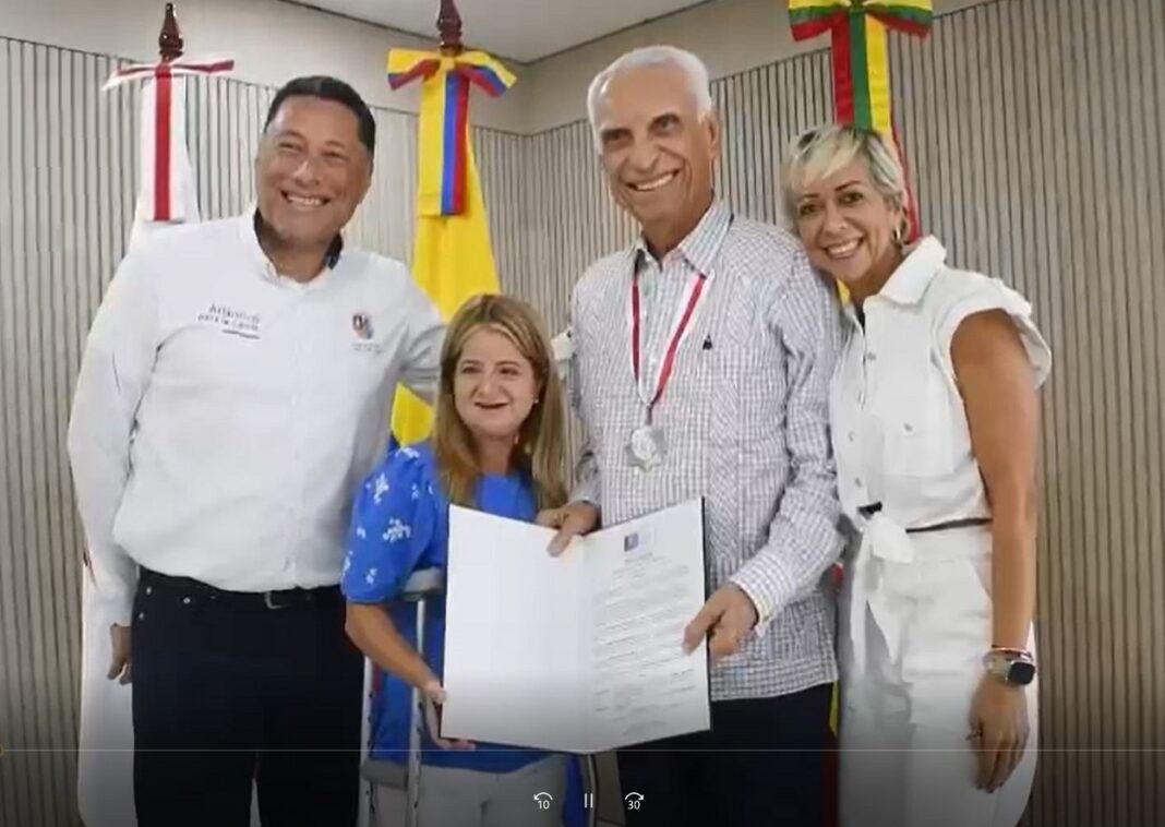 La mandataria departamental le entregó al exgobernador una mención de honor y la condecoración Medalla Puerta de Oro de Colombia, como homenaje a sus seis décadas de servicio y vocación.