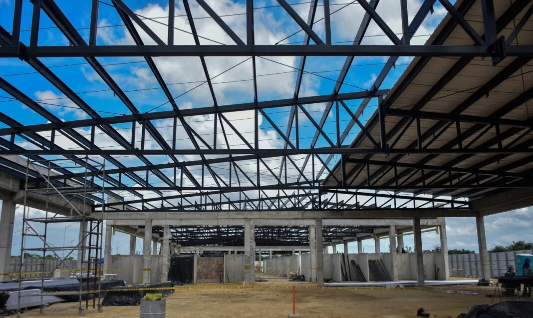 Actualmente las actividades de cimentación y estructuras de concreto se encuentran ejecutadas en un 100%, las actividades de estructura metálica se encuentran en un 95% de ejecución, la construcción de cubierta se encuentra en un 45% de ejecución, la construcción de módulos para vendedores se encuentra en un 33% de avance.
