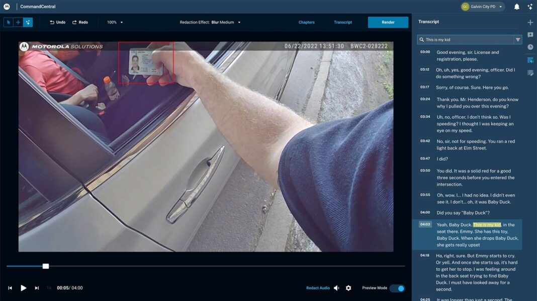 La investigación de la compañía muestra que los oficiales de patrulla pasan entre el 40% y el 60% de su tiempo escribiendo informes, ingresando datos básicos sobre personas, vehículos y propiedades. Motorola Solutions está apuntando a este trabajo que consume mucho tiempo, acelerando informes policiales y evidencia con mayor base fáctica, al tiempo que preserva el tiempo de los oficiales de manera integral, desde la llamada al 911 hasta el cierre del caso.