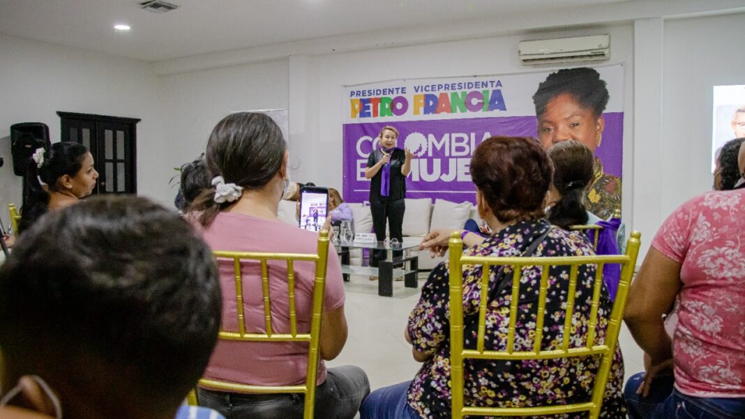 La gestora de la campaña Petro Presidente y del Frente Amplio Magdalena, Patricia Caicedo, lideró el conversatorio ‘Colombia es mujer’, en el socializó las propuestas del próximo presidente de Colombia como lo son el ingreso vital para las madres cabeza de familia, el reconocimiento del trabajo del hogar y los cuidados como piezas clave para la pensión o el empoderamiento.