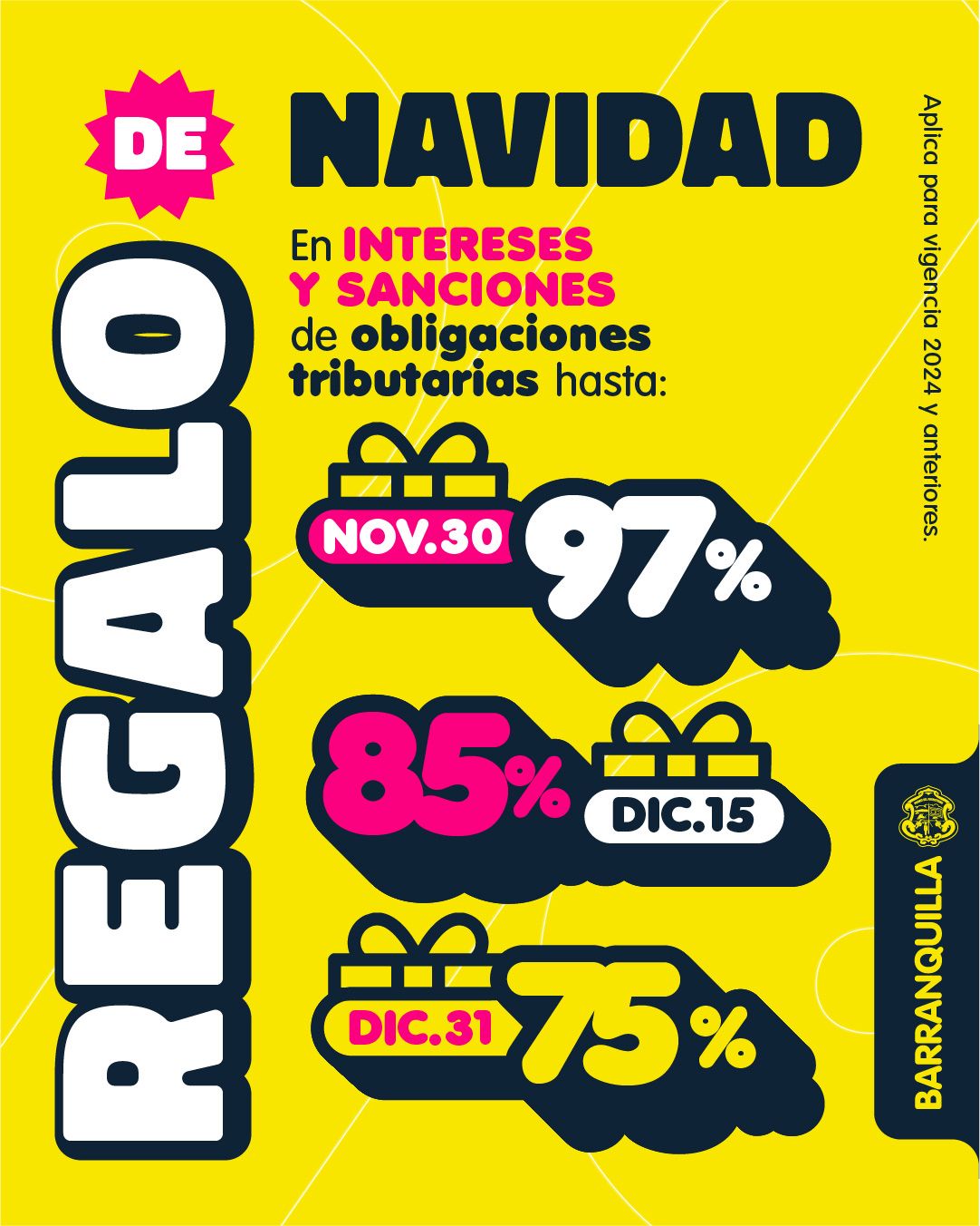 El alcalde Alejandro Char dio a conocer esta buena noticia en su cuenta de X: “Barranquillero, tenemos un regalo de Navidad para ustedes: descuentos especiales para que se pongan al día con sus compromisos tributarios. Podrán pagar sus impuestos y multas atrasadas con grandes reducciones en intereses y sanciones”. (Ver publicación).