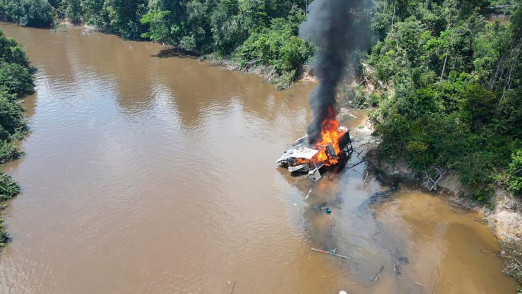 En el marco de la operación ‘Maloca Grande’ —solicitada por Parques Nacionales Naturales y el Ministerio de Ambiente y Desarrollo Sostenible—, las policías de Colombia y Brasil desmantelaron 19 puntos mineros en la selva amazónica: 12 ‘dragones’ fueron destruidos en aguas colombianas y 7 más en territorio brasileño, avaluados en más de 50 mil millones de pesos.