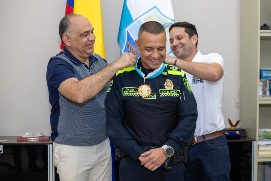 La distinción entregada por el alcalde Distrital Carlos Pinedo Cuello, al saliente comandante de la Policía Metropolitana de Santa Marta, Jorge Andrés Bernal, se dio en el grado de “Gran Cruz de Oro Sierra Nevada”, en reconocimiento por su labor, entrega y compromiso con la seguridad ciudadana y la lucha contra el crimen en la capital del departamento del Magdalena.