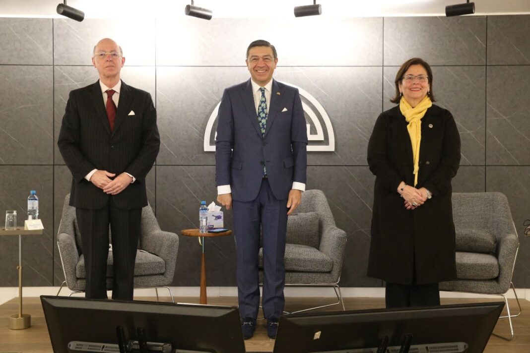 Jorge Hernando Pedraza mencionó las acciones promovidas por la CAN en materia de salud, como la donación de Colombia para facilitar la vacunación contra el Covid en comunidades vulnerables, el trabajo conjunto que el organismo viene desarrollando con la OPS en favor de migrantes, pueblos indígenas y afrodescendientes y el fortalecimiento de capacidades que impulsa la Comunidad Andina y la OPS con apoyo de la Organización Internacional para las Migraciones.