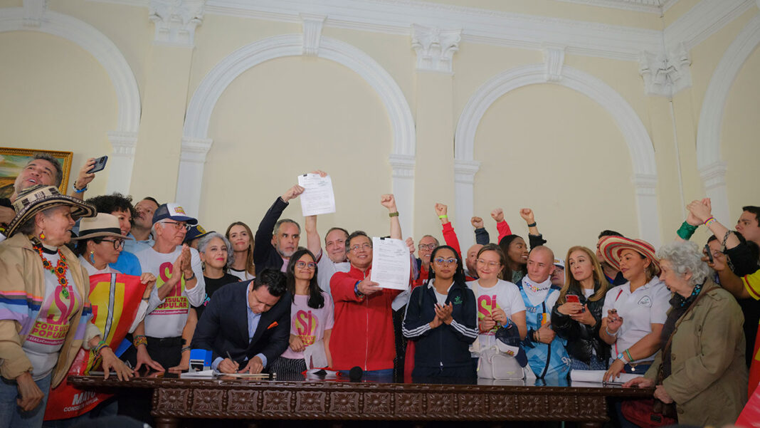 Así lo manifestó el presidente Gustavo Petro en la radicación de la Consulta Popular en el Senado de la República, luego de participar activamente en la marcha y la masiva concentración en la Plaza de Bolívar de Bogotá para la conmemoración del Día del Trabajo y de respaldo ciudadano a la consulta.