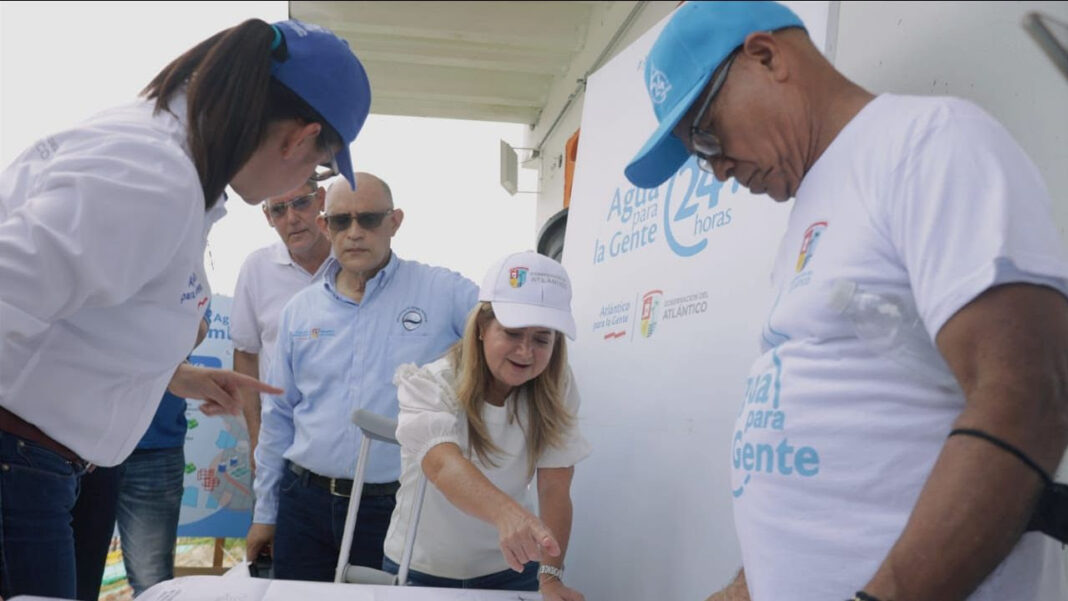 “18 barrios de Malambo tendrán agua 24 horas, siete días de la semana, a partir de marzo del próximo año. Gracias a esta inversión de 14 mil millones de pesos, se construyen un tanque semienterrado, un tanque elevado y una estación de rebombeo, que conforman el sistema de almacenamiento de la zona de El Tesoro. La buena noticia es que también vamos a llegar a la zona de El Concorde con este mismo sistema, para que no quede un solo barrio de Malambo sin agua 24/7. También llegaremos a Caracolí y las veredas, para que todos se conecten al sistema de acueducto”, indicó la Gobernadora del Atlántico.