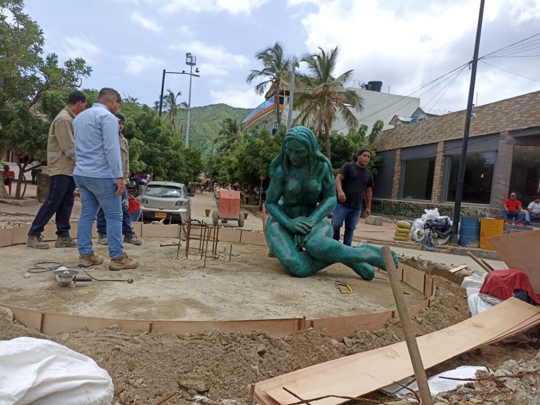 La primera pieza del conjunto de esculturas que rinde homenaje a la etnia Tayrona llegó a Taganga, siendo este corregimiento el primer punto de reubicación de uno de los seis monumentos que estarán instalados para que puedan ser apreciadas por samarios y visitantes.