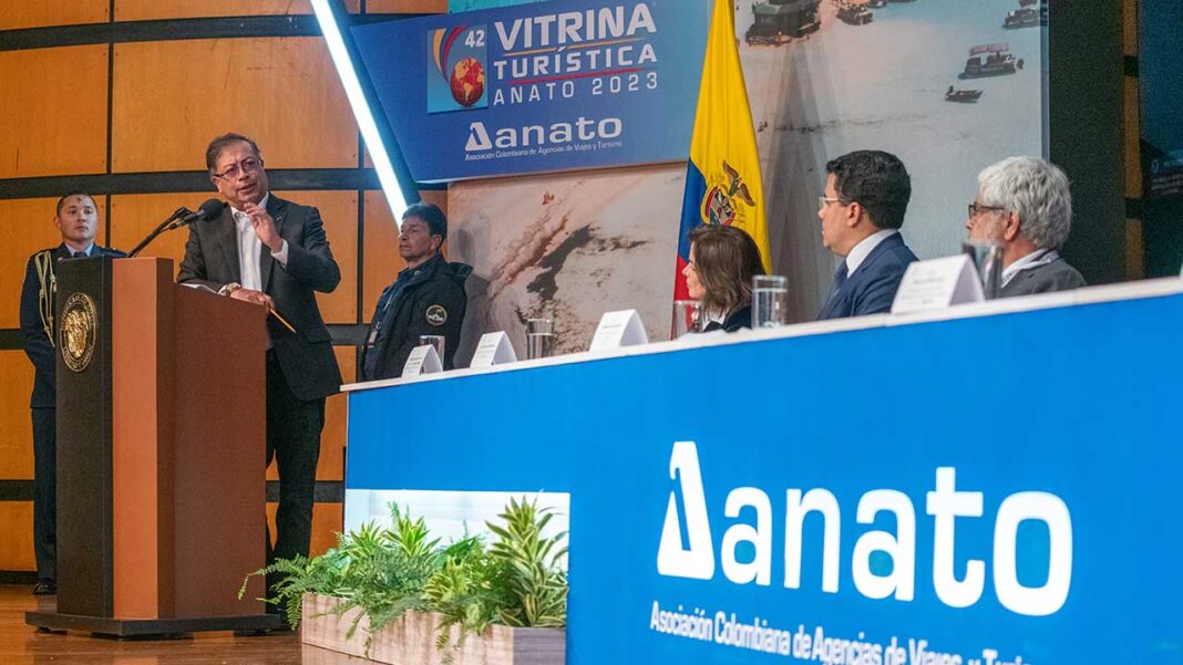 El Presidente Gustavo Petro participó este miércoles en la instalación de la XLII Vitrina Turística de la Asociación Colombiana de Agencias de Viajes y Turismo (Anato), evento en el cual invitó a esta industria a promover a Colombia como el país de la belleza en todo el mundo.