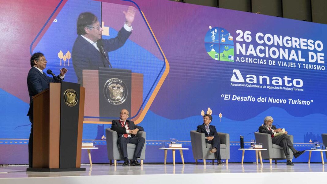El Presidente de la República, Gustavo Petro, expresó este jueves su respaldo al sector del turismo de Colombia, al participar en el 26º Congreso Nacional de la Asociación Nacional de Agencias de Viaje y Turismo (Anato).