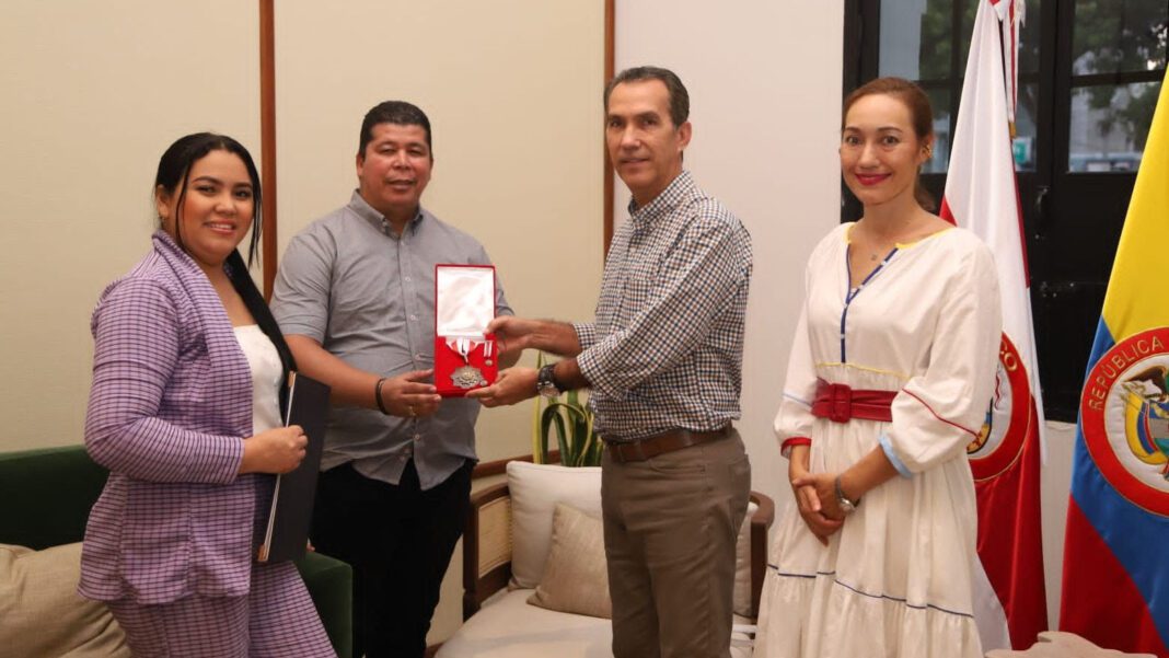 La Gobernación del Atlántico, a través del secretario de Desarrollo Económico, Luis Humberto Martínez, dañó condecoración a la Asociación de Vendedores Estacionarios y Móviles de Barranquilla (Asovendedores) con la ‘Medalla Puerta de Oro de Colombia’.