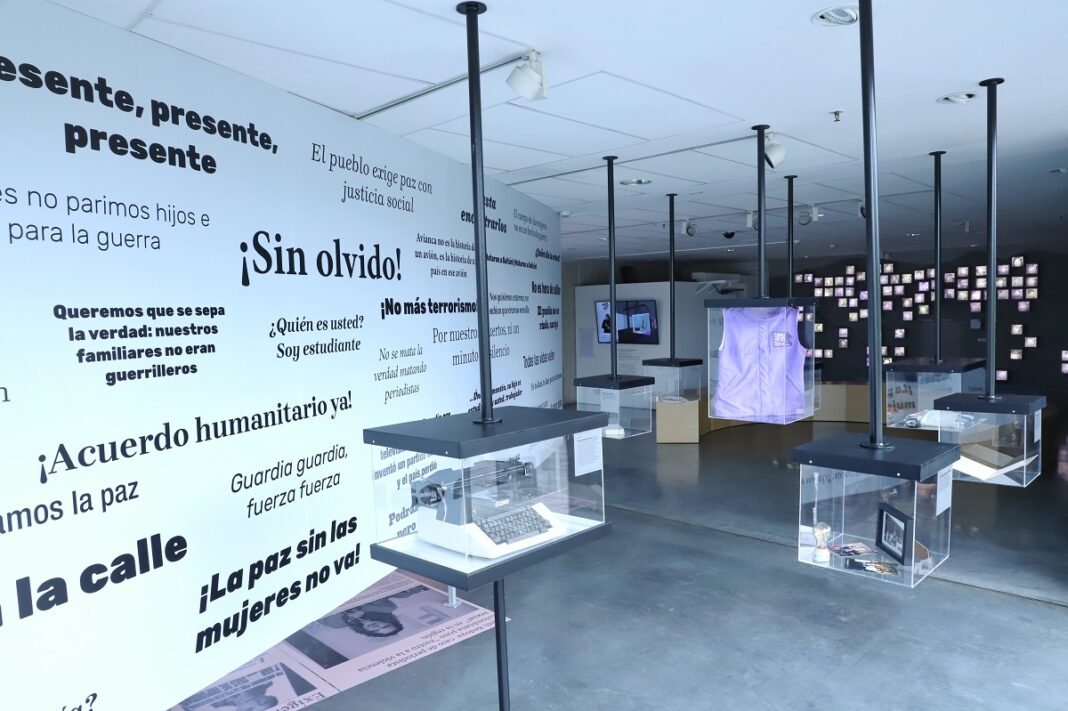 Durante su recorrido por la exposición, las y los visitantes encontrarán archivos de prensa, reflexiones de líderes y lideresas de organizaciones sociales y de víctimas, archivos audiovisuales de movilizaciones sociales por la paz y la democracia, fotografías de lugares de memoria de la ciudad y objetos representativos de las víctimas, además de experiencias de reconciliación y construcción de paz.