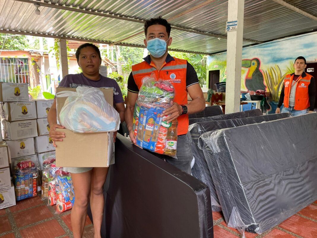 Alcaldía de Santa Marta avanza en la atención de la emergencia registrada por el desbordamiento del río Don Diego, en zona rural del Distrito. A las acciones de mitigación del riesgo de desastres ya ejecutadas con apoyo de maquinaria amarilla, se suma la entrega de kits de asistencia humanitaria alimentaria y no alimentaria, que han sido dispuestos en beneficio de las familias que residen en las 30 viviendas que resultaron afectadas y que perdieron enseres o medios de vida.