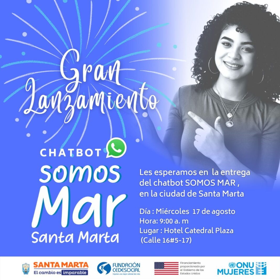 Gracias al trabajo conjunto entre la Alcaldía de Santa Marta, ONU Mujeres Colombia, la Oficina de Población, Refugiados y Migración del Departamento de Estado de los E.E.U.U. y la Fundación Cedesocial, se lanzará el chatbot o asistente virtual ‘Somos Mar’, este 17 de agosto en el Hotel Catedral Plaza de la ciudad.