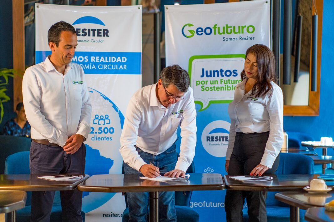 La Gerente General de Geofuturo, Olga Lucía Gaviria, firmó la asociación entre esta empresa que lleva más de 18 años trabajando por la sostenibilidad en Colombia, y la multinacional chilena, Resiter.