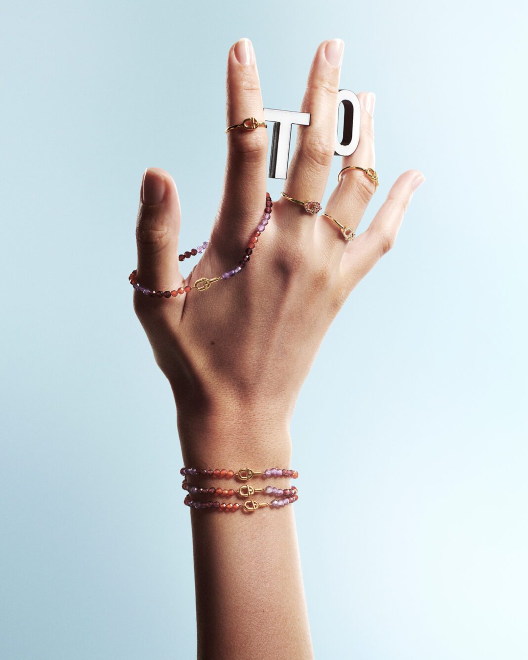 La T y la O de Tous se presentan en forma de cierre en joyería trabajado con la misma tipografía de su logotipo. Letras que también aparecen en el nombre de la colección dando la importancia a la autoexpresión que caracteriza tanto a la marca: Tous ManifesTO.
