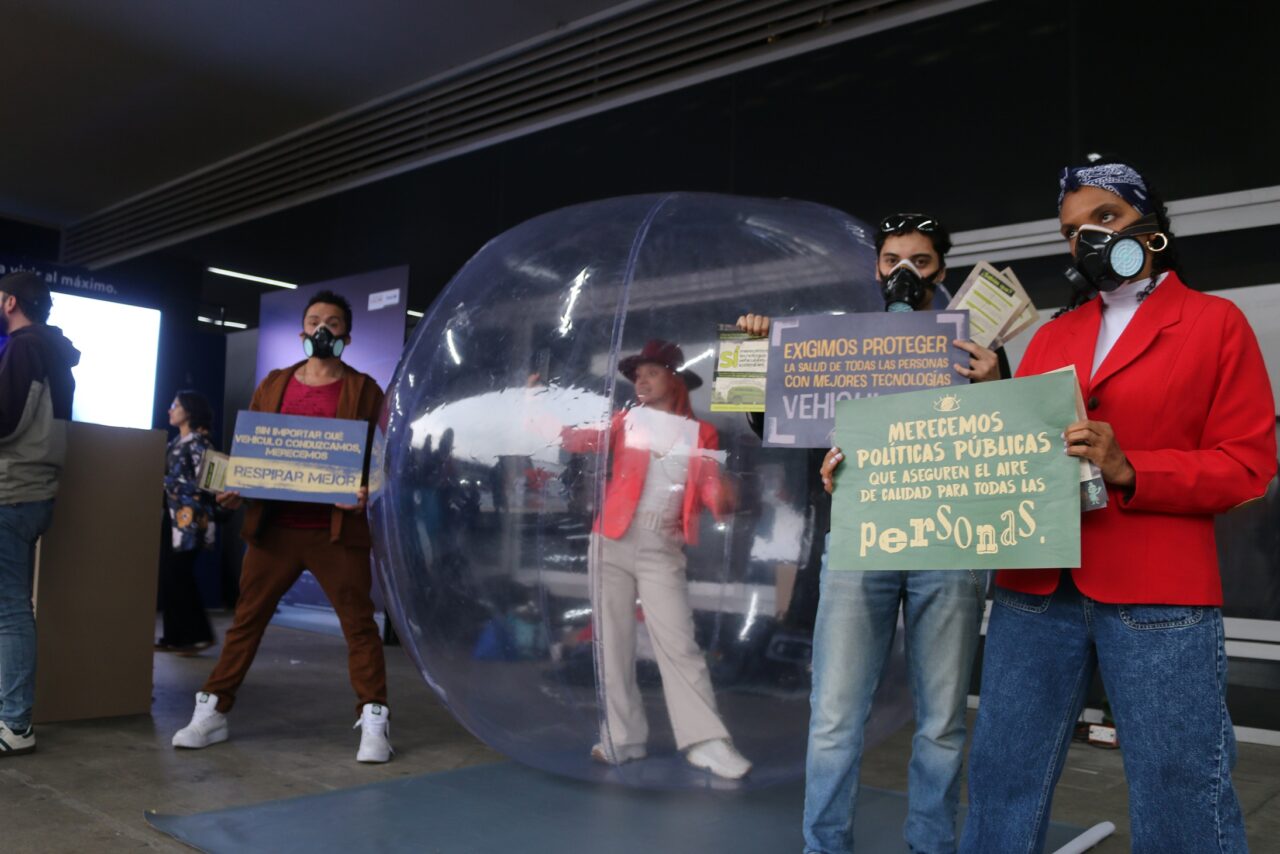 Para traducir este concepto técnico a un lenguaje cercano, se desarrolló la instalación “Vida fuera de la burbuja”, una experiencia sensorial y emocional que permitió conversar con los asistentes sobre calidad del aire, contaminación, movilidad y los mitos más comunes alrededor de los vehículos eléctricos.