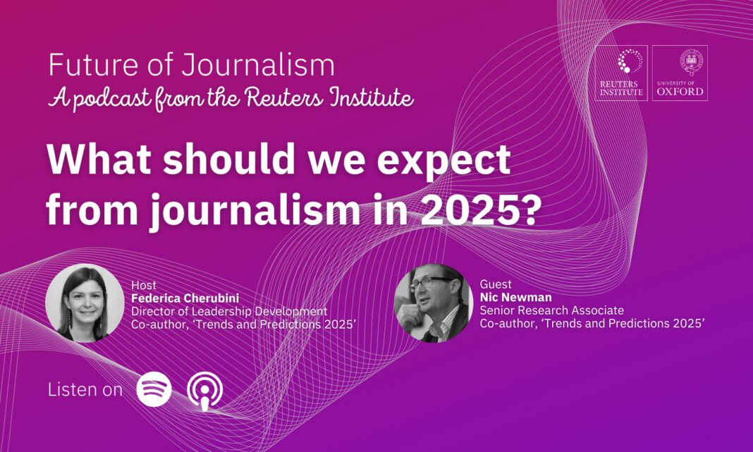 El diálogo. Nic Newman y Federica Cherubini, autores del informe anual sobre tendencias y predicciones para el sector periodístico, protagonizan el episodio más reciente del pódcast, donde exponen los principales retos que asoman en este 2025: inteligencia artificial, influencers, plataformas, productos y mucho más. Es publicado por el boletín semanal en español del Instituto Reuters.