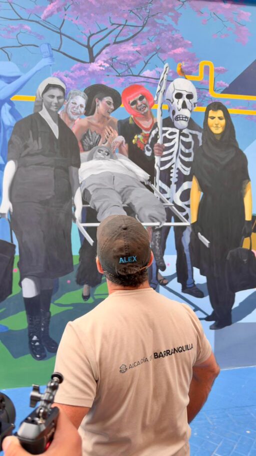 Concepto: el mural se inspira en uno de los episodios más emblemáticos y simbólicos del Carnaval de Barranquilla: el entierro de Joselito Carnaval, rito que representa el cierre de cuatro días de euforia, exceso y libertad popular. En esta obra, el artista aborda el momento donde la fiesta toca la muerte, y la muerte, a su vez, se transforma en un gesto de celebración colectiva.