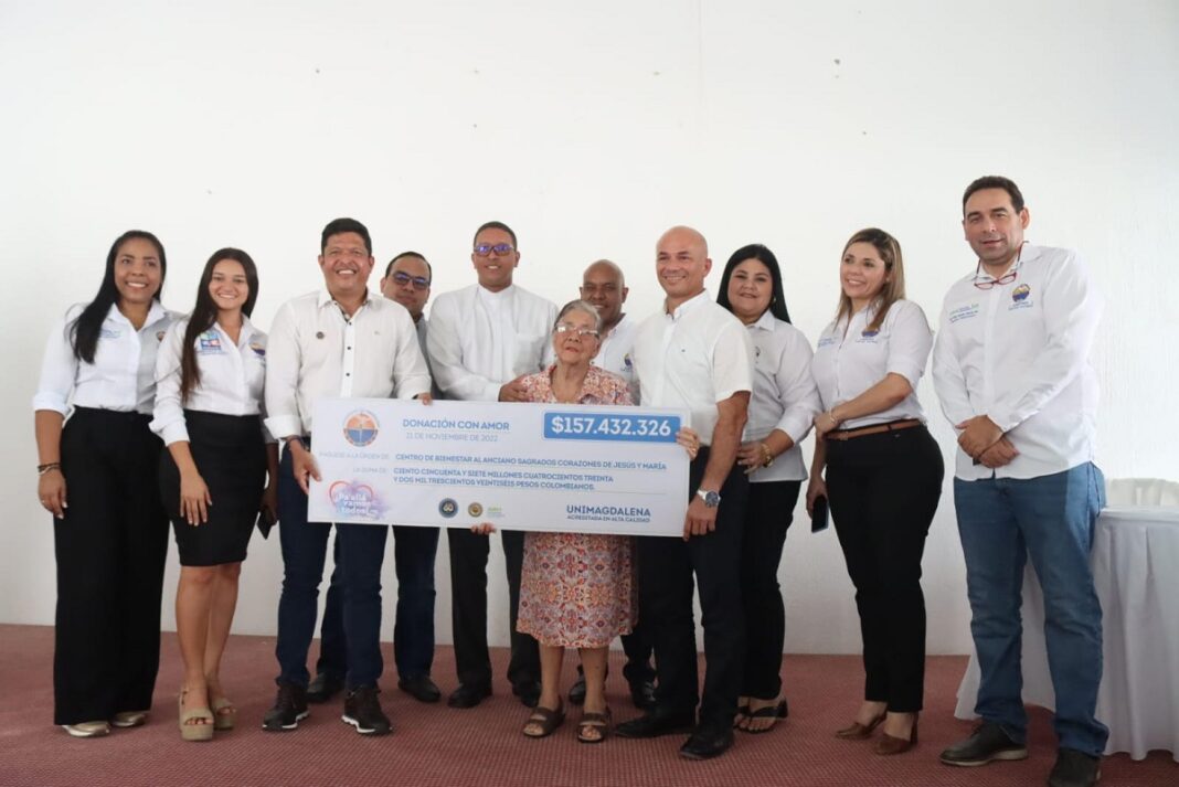 Pablo Vera Salazar, Rector de la Universidad del Magdalena, oficializó la entrega de $157.432.326 correspondiente al total recaudado para reconstruir y dotar el Centro de Bienestar al Anciano Sagrados Corazones de Jesús y María, más conocido como el asilo de Santa Marta.