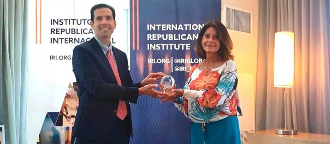 Este galardón, que reconoce a las dirigentes que han contribuido al avance de las mujeres en la política y la sociedad civil, fue entregado a la Vicepresidenta y Canciller por el Presidente del IRI, Daniel Twining, quien destacó su “servicio extraordinario por el empoderamiento y la inclusión de la mujer en Colombia y el modelo que ha sido para las mujeres del mundo”.